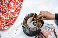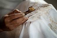 Batikken is eigenlijk een manier om te voorkomen dat geweven stof wordt geverfd, waarbij bijenwas wordt gebruikt. Traditioneel wordt de vloeibare was uit een pot met een lange tuit op de stof gegoten, een proces dat tegenwoordig grotendeels is vervangen door stempelen. Er kunnen nog een aantal was- en verfbeurten volgen, waarbij de batik soms barst.